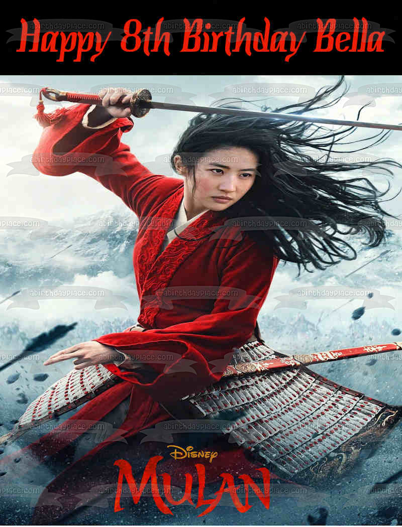 Disney Mulan la Espada Feliz Cumpleaños Nombre Personalizado Edible Cake Topper Imagen ABPID51053