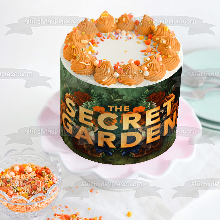 ¡Decora tu pastel con esta imagen de adorno comestible para pastel con temática de El Jardín Secreto que presenta un fondo de flores variadas!