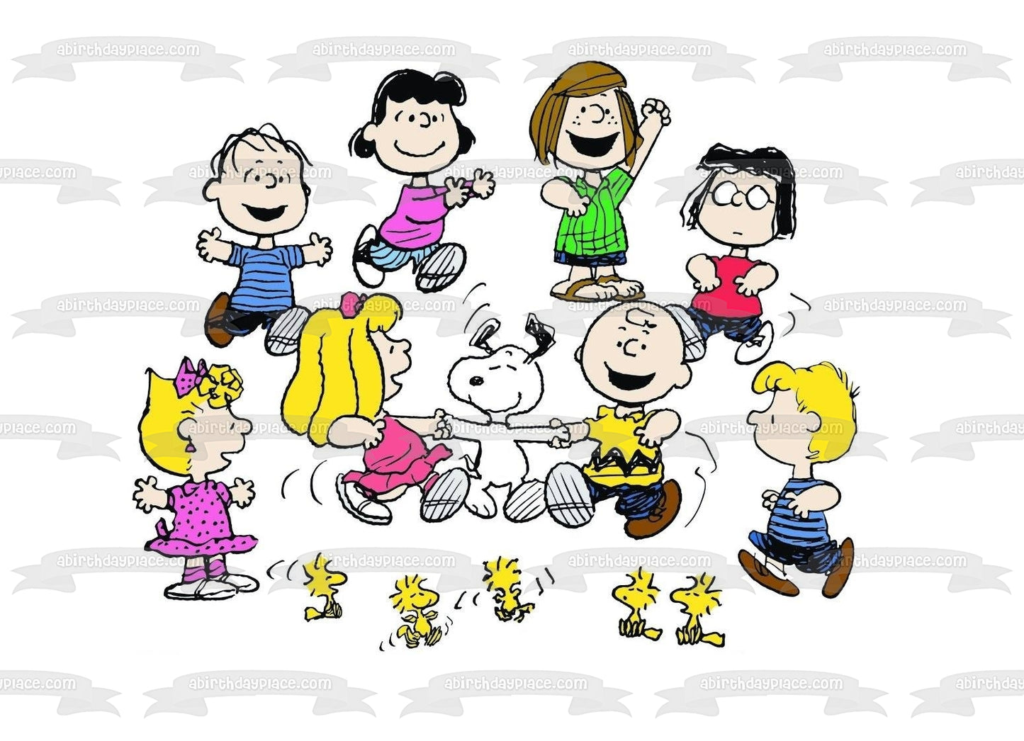 Peanuts Charlie Brown Snoopy Linus Lucy Sally Peppermint Patty Woodstock Imagen comestible para decoración de tarta ABPID52201