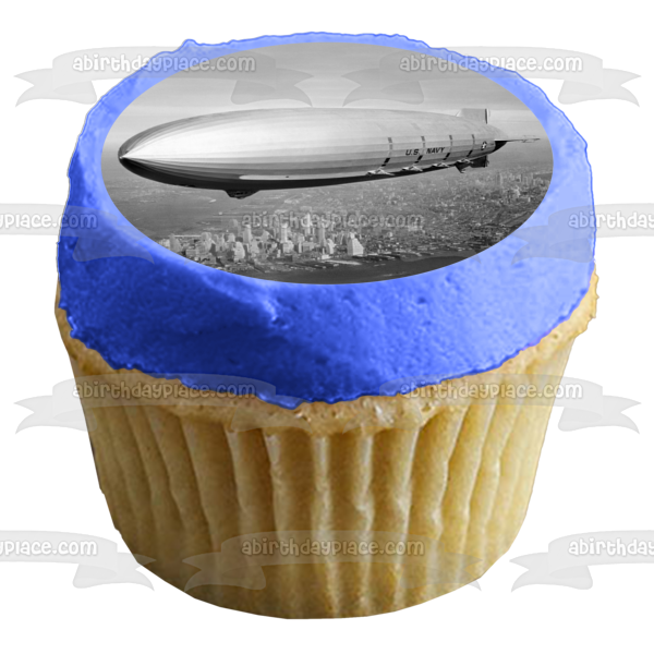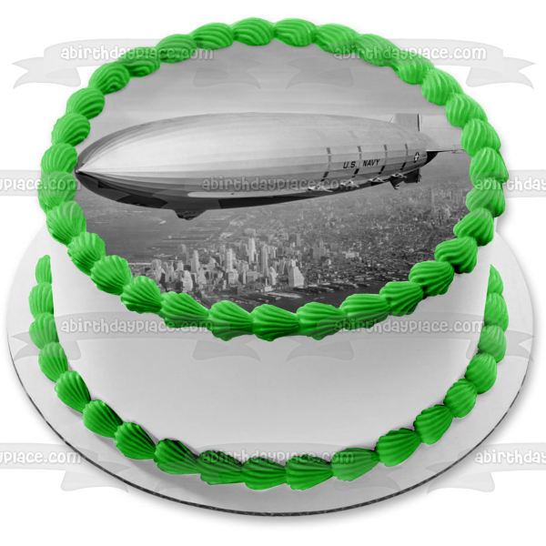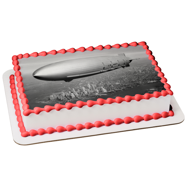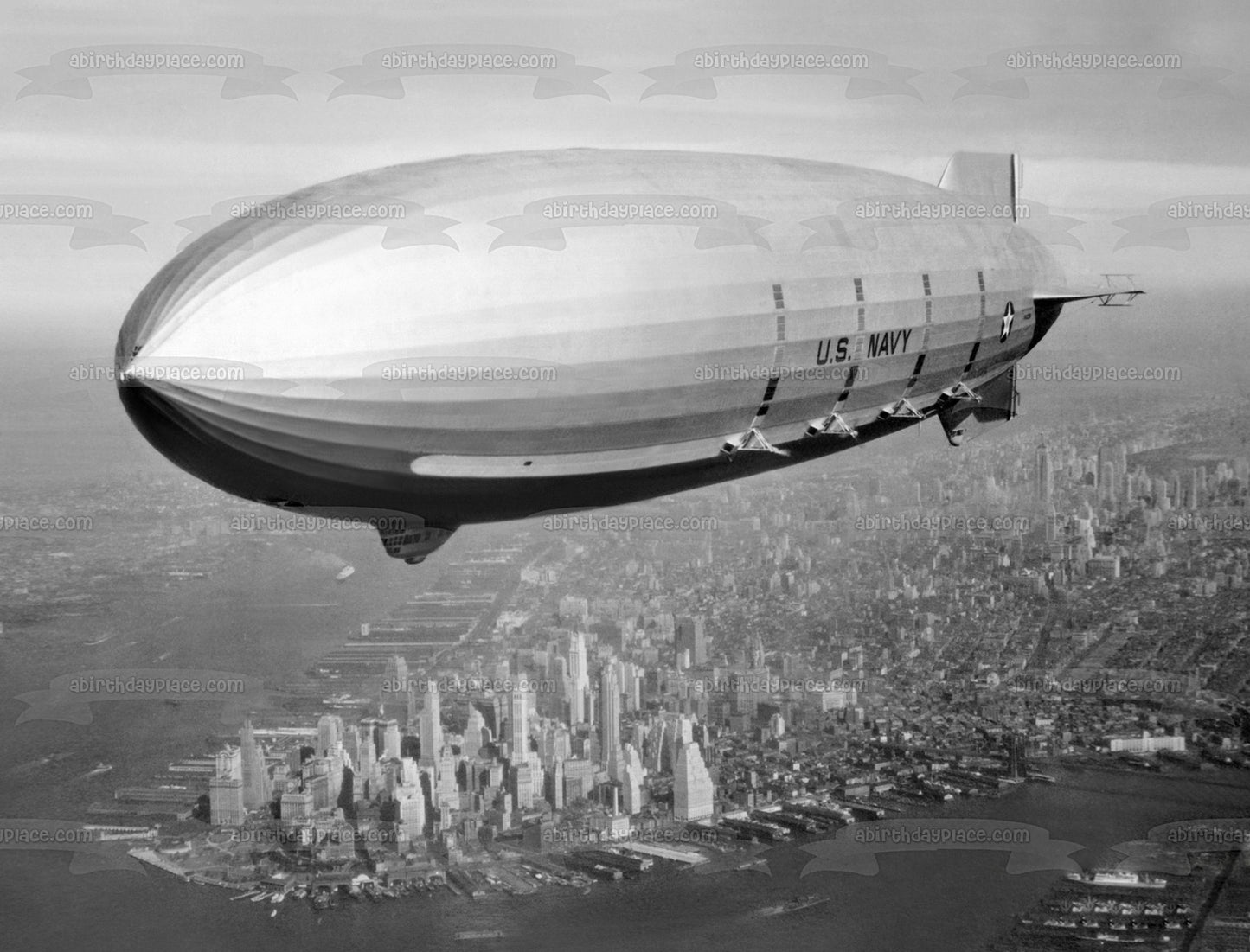 ¡Decora tu pastel con esta imagen de adorno comestible para pastel que presenta el dirigible de la Armada USS Akron!