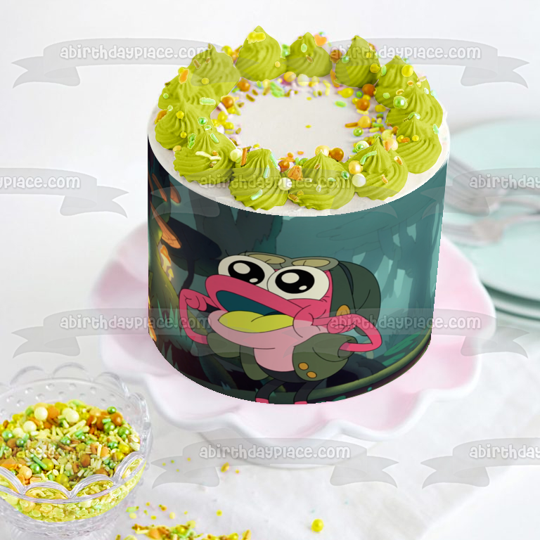 ¡Decora tu pastel con esta imagen de adorno comestible para pastel con temática de anfibios que presenta Sprig Plantar!