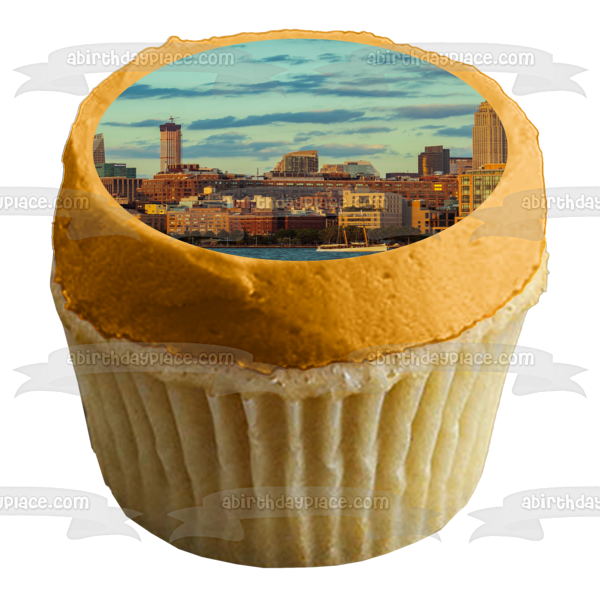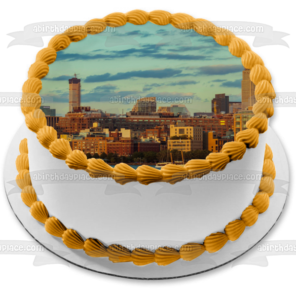 ¡Decora tu pastel con esta imagen de adorno comestible para pastel con el tema City Buildings Scape!