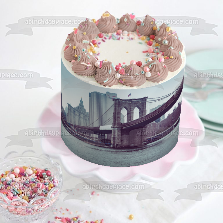 ¡Decora tu pastel con esta imagen de adorno comestible para pastel con temática de Brooklyn Bridge Park!