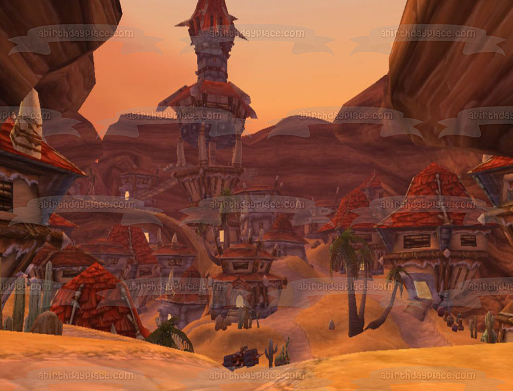 ¡Decora tu pastel con esta imagen de adorno comestible para pastel con temática de World of Warcraft que presenta a Orgimmar!