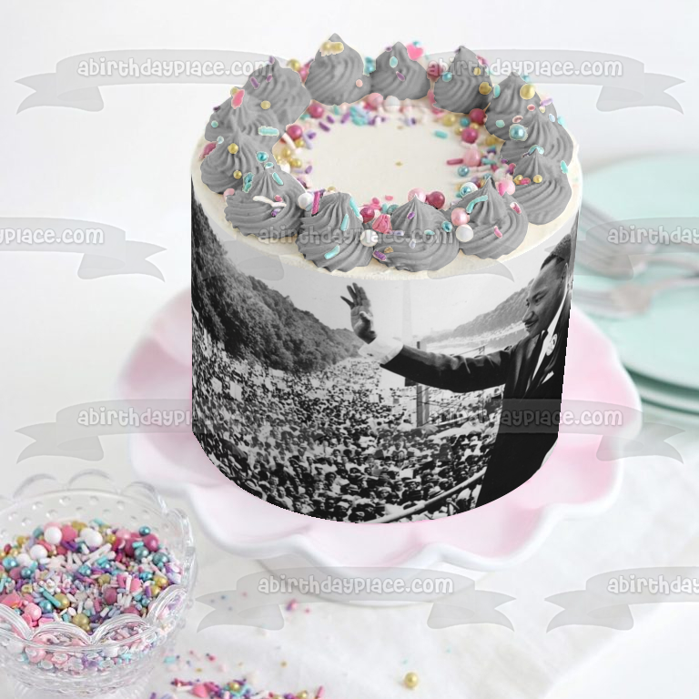 Día de Martin Luther King Jr. Martin Luther King Jr. saludando a la multitud Imagen comestible para decoración de tarta ABPID53564