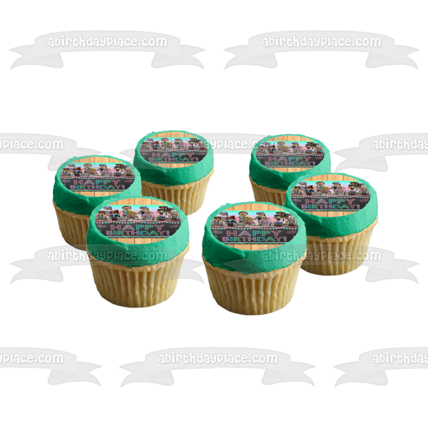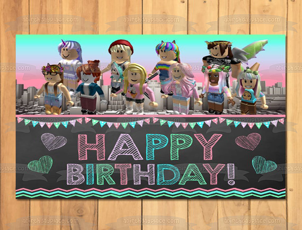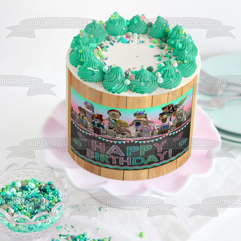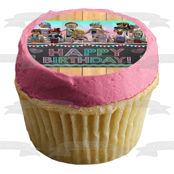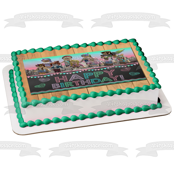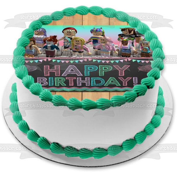 ¡Decora tu pastel con esta imagen de adorno comestible para pastel con temática de Roblox Girls Group que incluye las palabras "Feliz cumpleaños"!