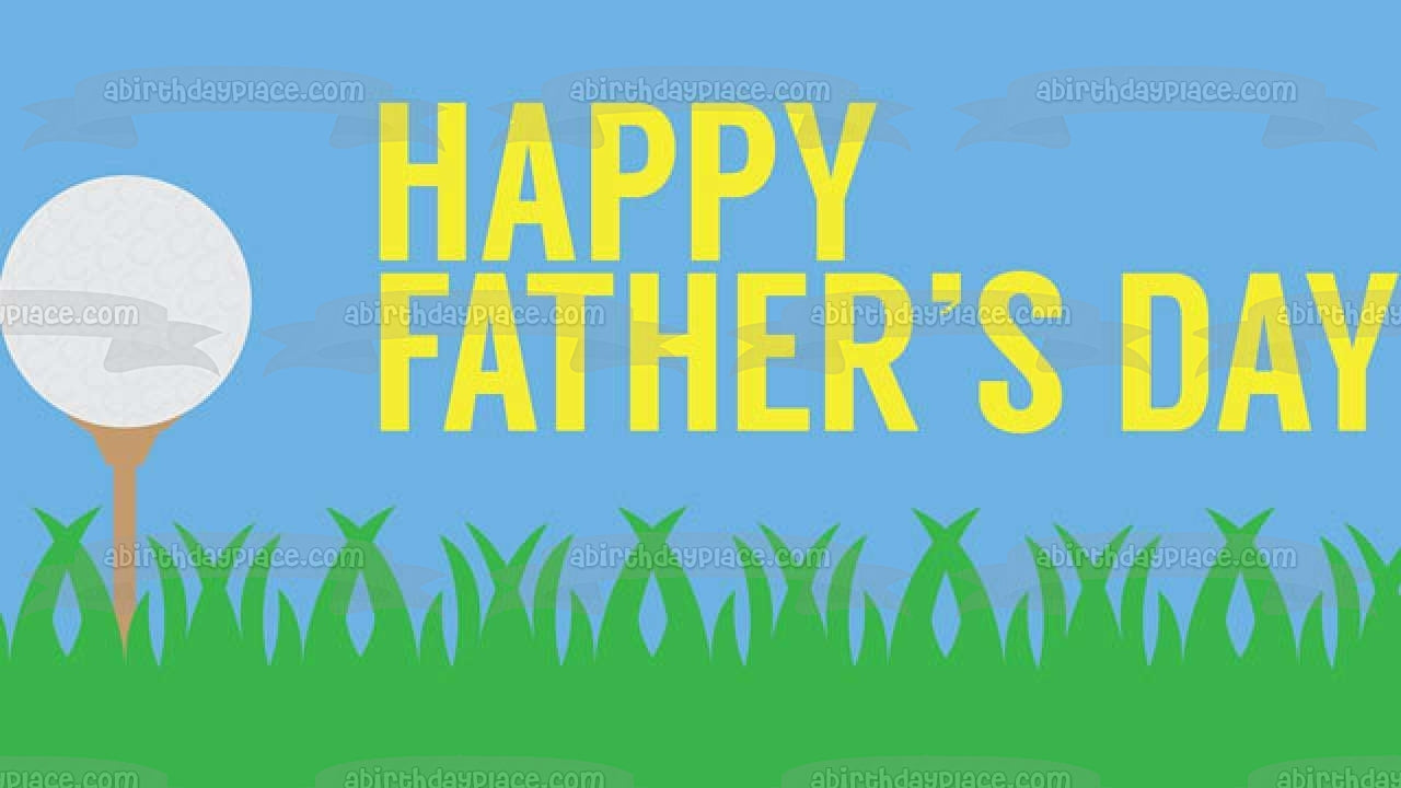 ¡Decora tu pastel con esta imagen de adorno comestible para pastel con temática del Feliz Día del Padre que presenta una pelota de golf!