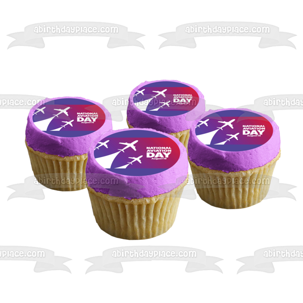 ¡Decora tu pastel con esta imagen de adorno comestible para pastel con temática del Día Nacional de la Aviación que presenta aviones!