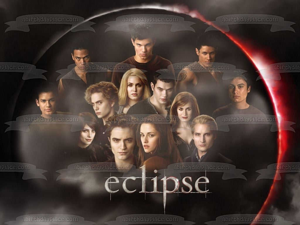 La saga Crepúsculo: Eclipse Bella Edward Jacob Rosalie Alice Jasper Emmet Carlisle Esme Imagen comestible para decoración de tarta ABPID54563