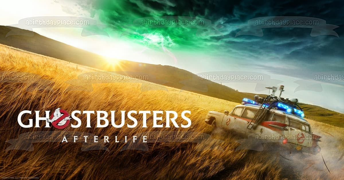 Cazafantasmas: Más Allá Ecto-1 Coche en un campo Imagen comestible para decoración de tarta ABPID54653