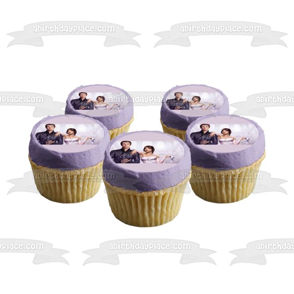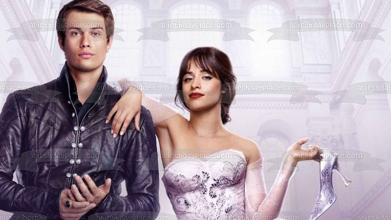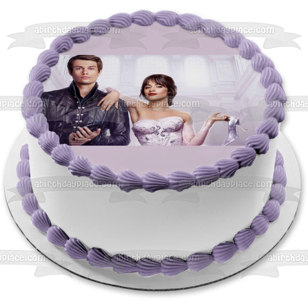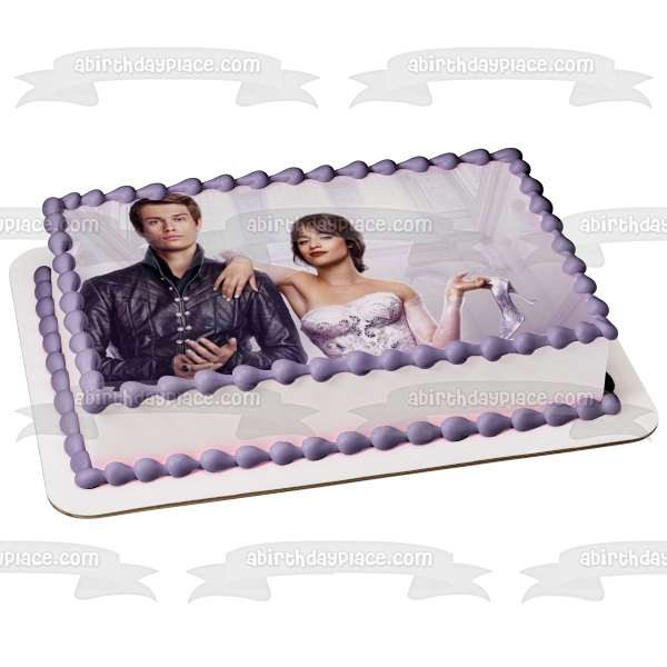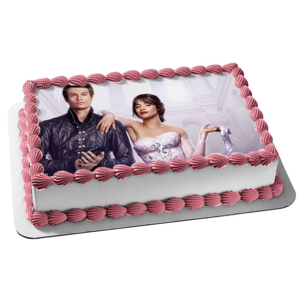 ¡Decora tu pastel con esta imagen de adorno comestible para pastel con temática musical de Cenicienta que presenta al Príncipe Robert y Cenicienta sosteniendo una zapatilla de cristal!