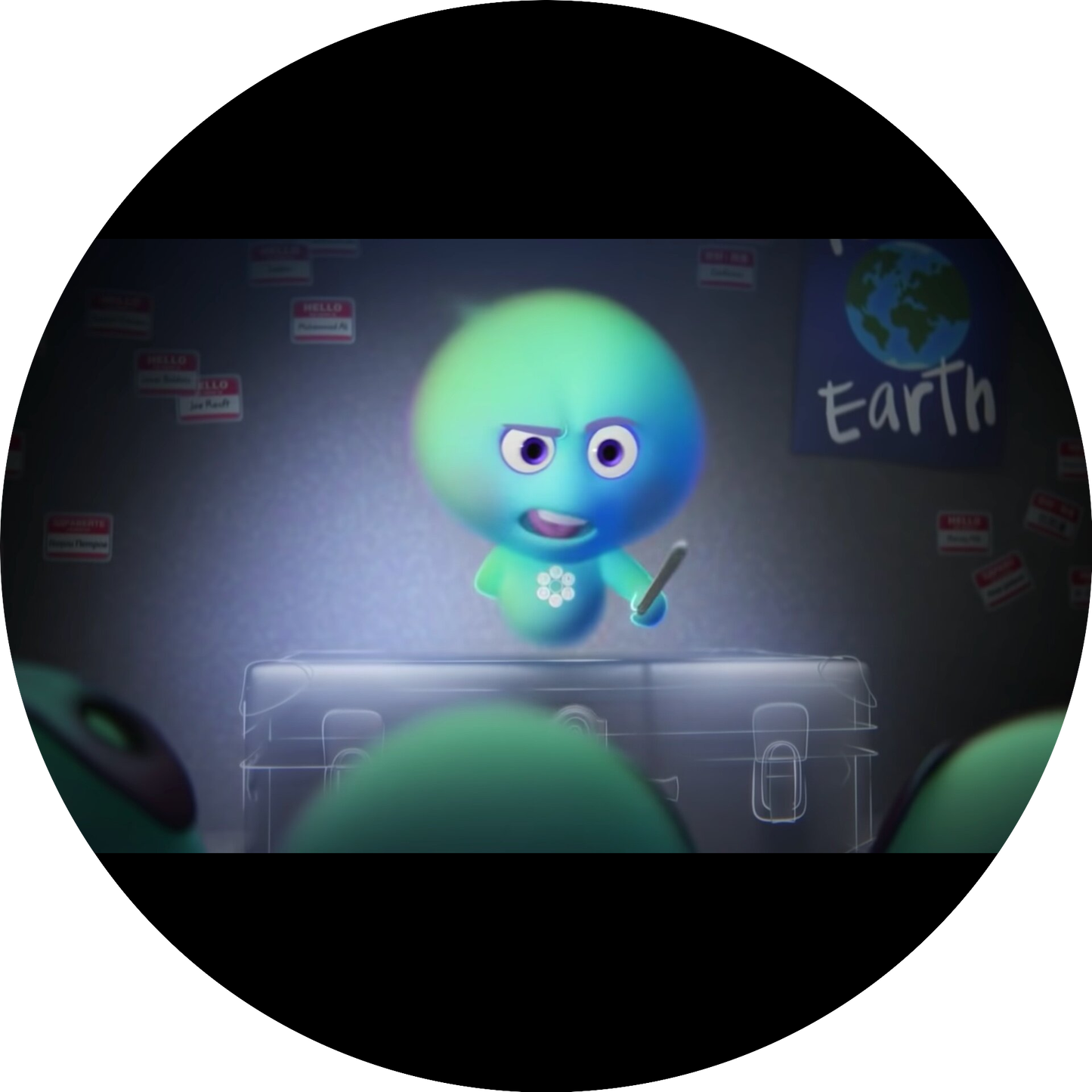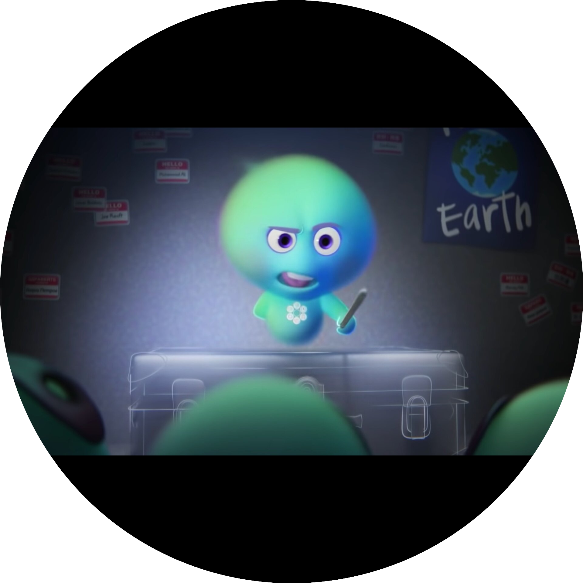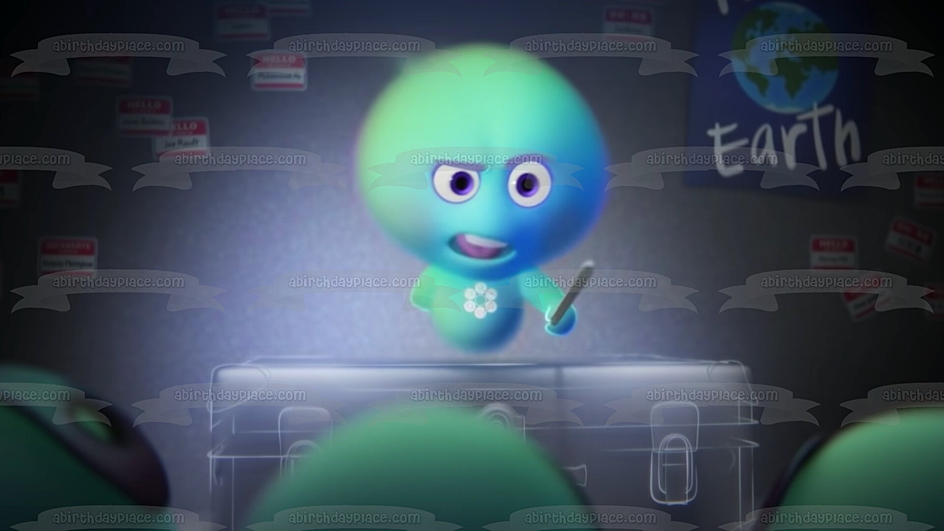 ¡Decora tu pastel con esta imagen de adorno comestible para pastel con temática de 22 contra la Tierra que presenta a 22 enseñando una clase!