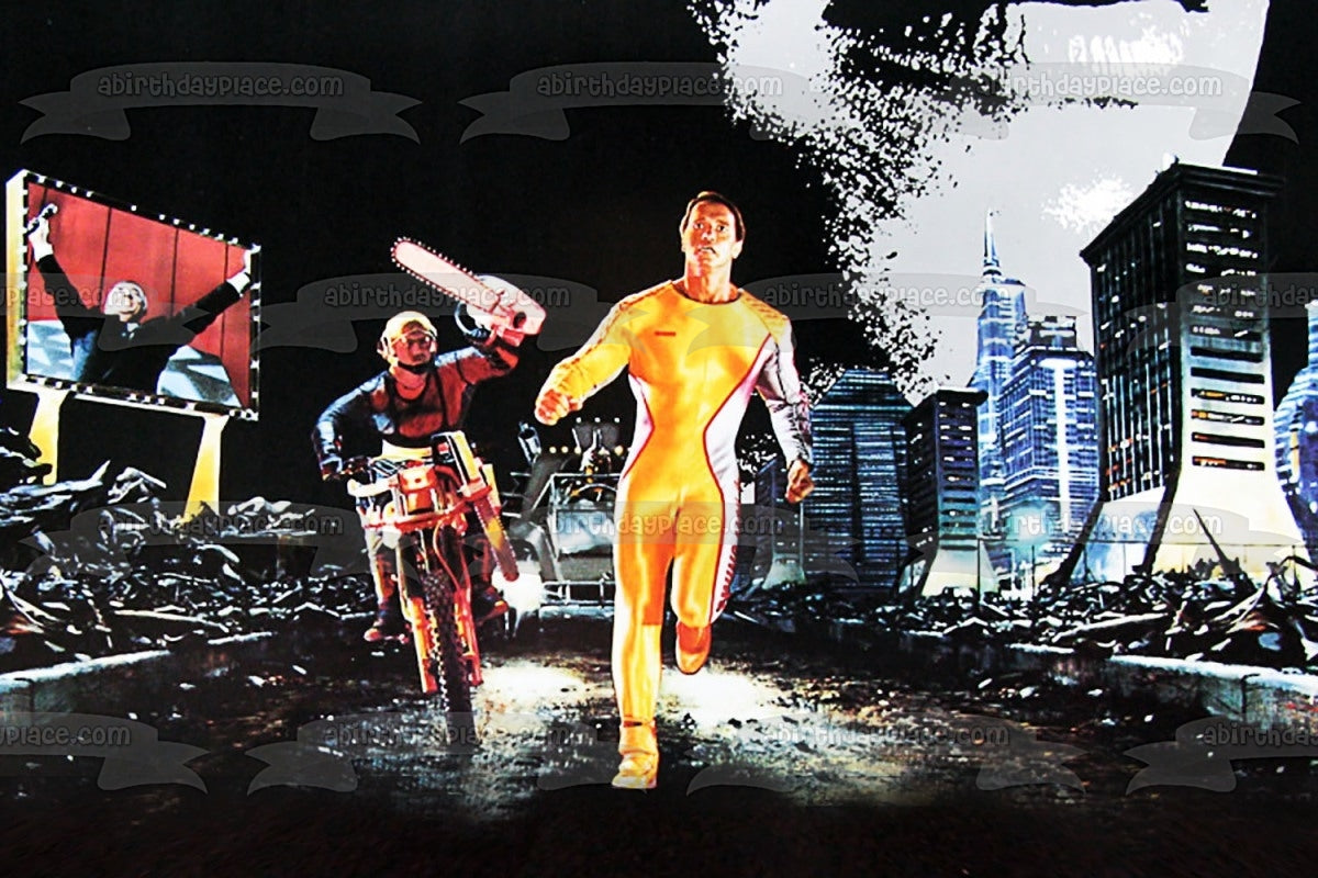 ¡Decora tu pastel con esta imagen de adorno comestible para pastel con temática de The Running Man que presenta a Ben Richards!