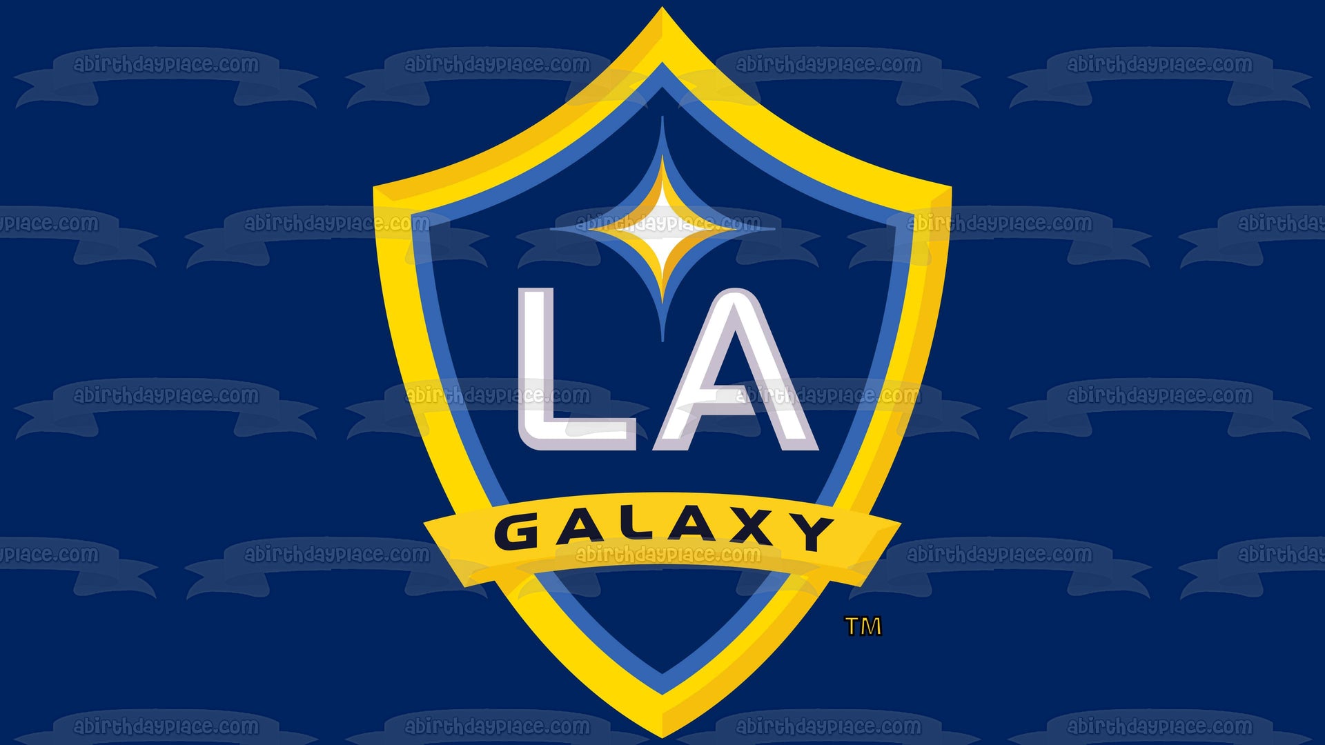 ¡Decora tu pastel con esta imagen de adorno comestible para pastel con temática del LA Galaxy FC que presenta el logotipo del equipo!