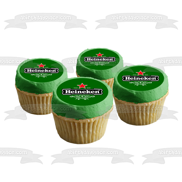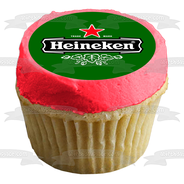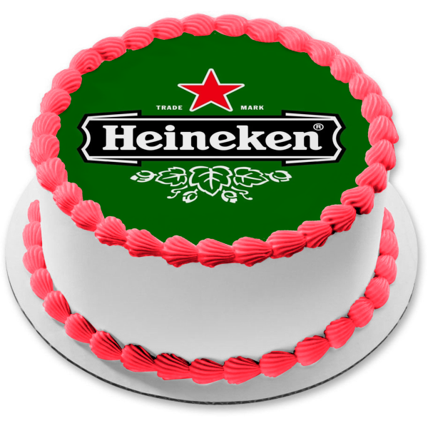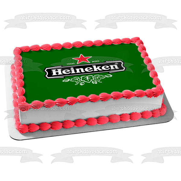 ¡Decora tu pastel con esta imagen de adorno comestible para pastel con el tema de la cerveza Heineken y su logotipo!