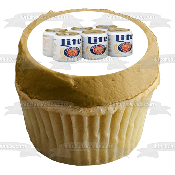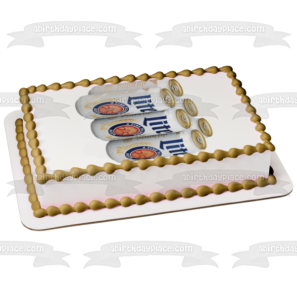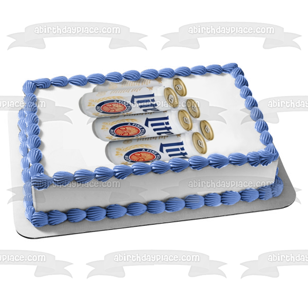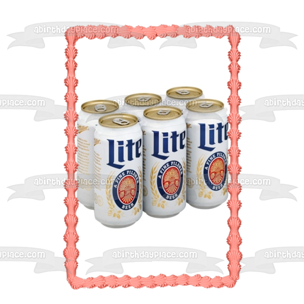 ¡Decora tu pastel con esta imagen de adorno comestible para pastel con temática de cerveza Miller Lite que incluye un paquete de 6 latas!
