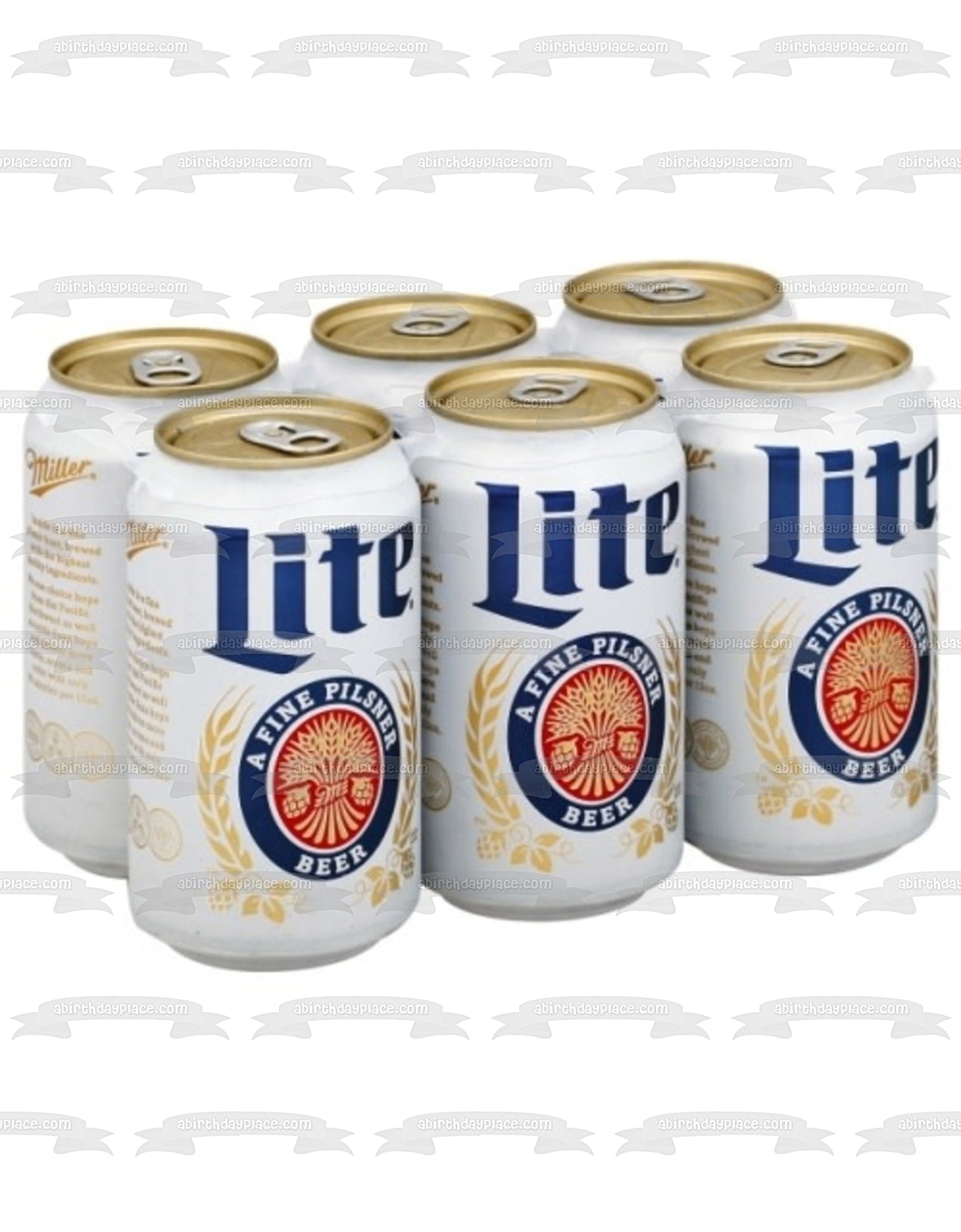 Paquete de 6 latas de cerveza Miller Lite, decoración comestible para pastel, imagen ABPID56144