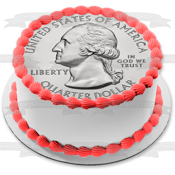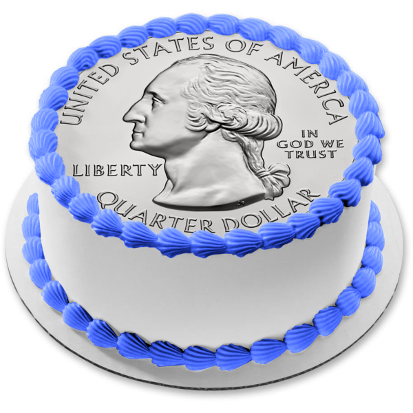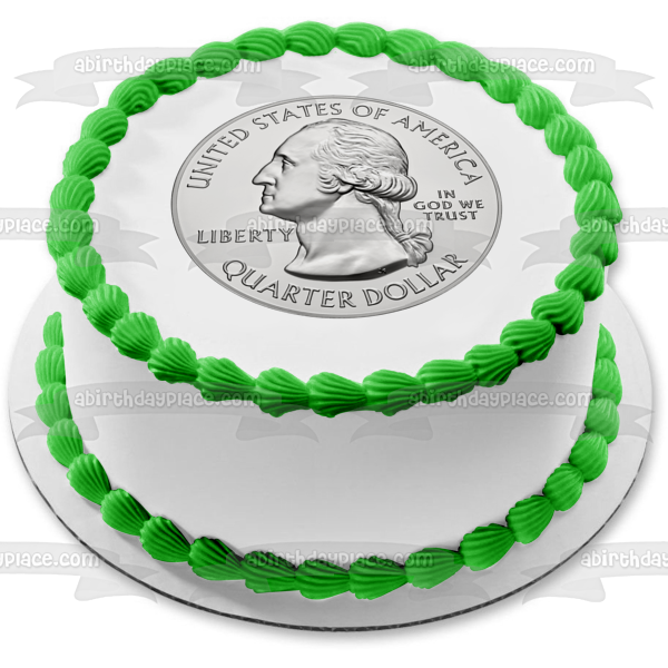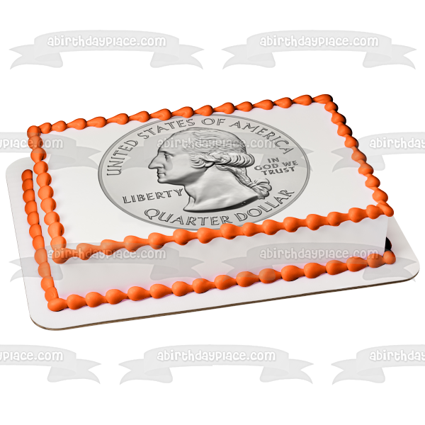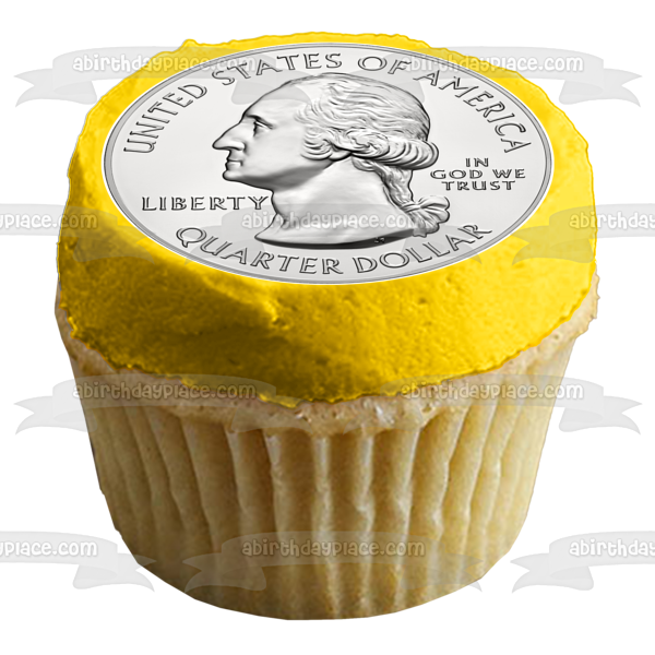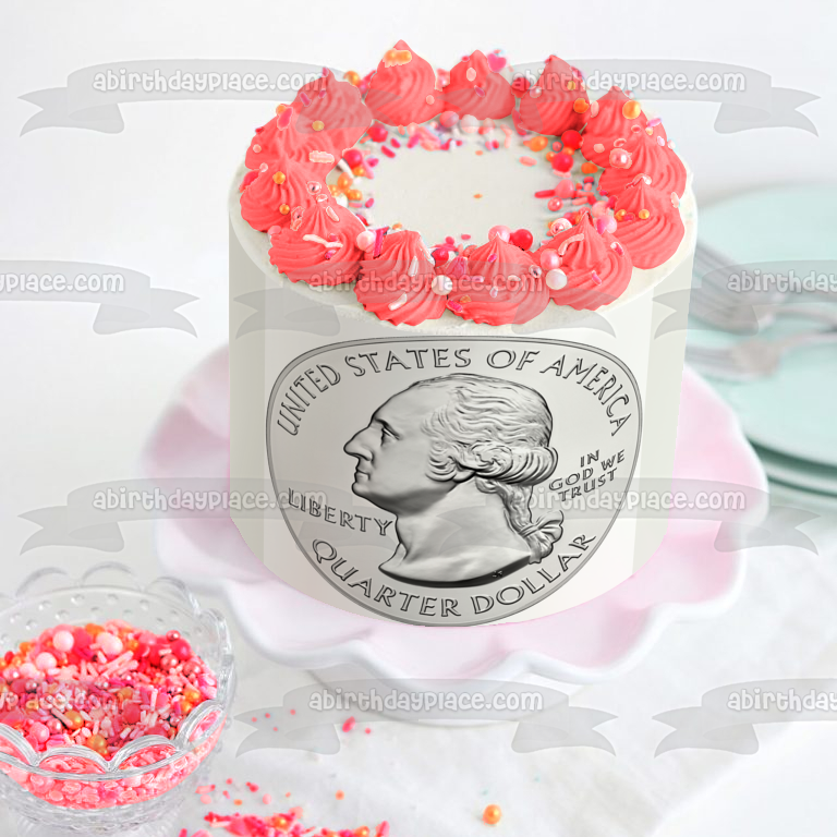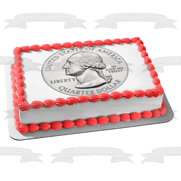 ¡Decora tu pastel con esta imagen de adorno comestible para pastel con temática de 25 centavos de moneda de un cuarto de moneda estadounidense que presenta dinero estadounidense!