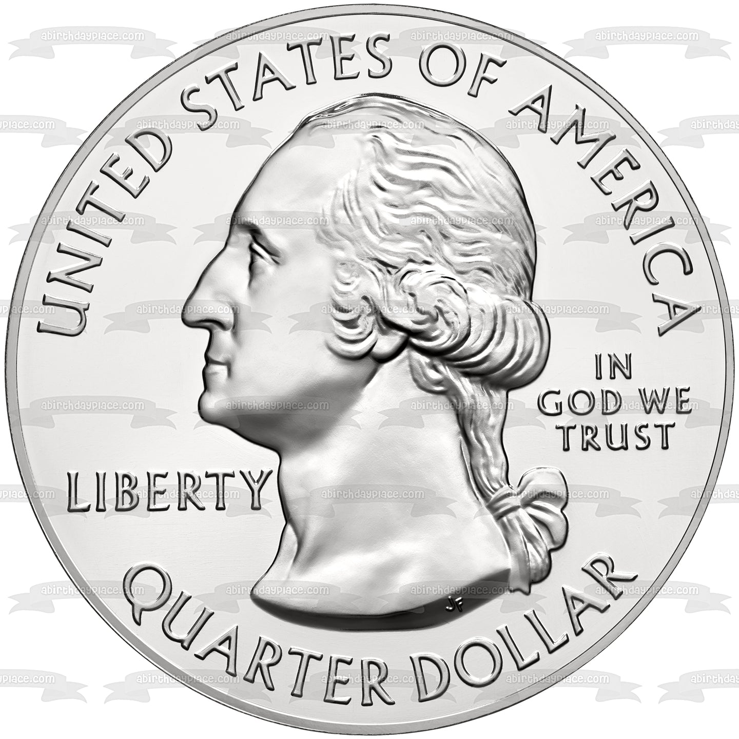 Imagen de adorno comestible para tarta comestible de dinero americano de 25 centavos de moneda estadounidense ABPID56542