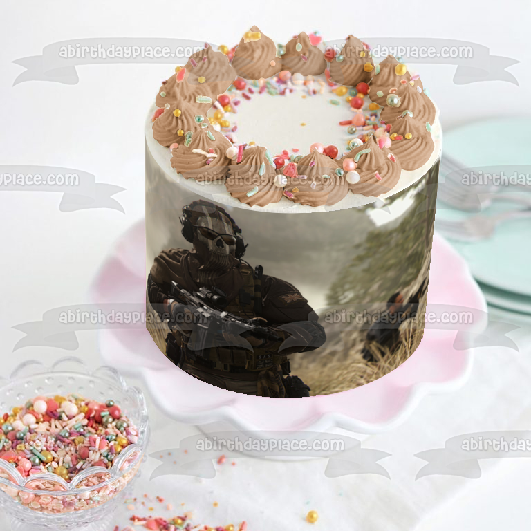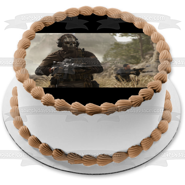 ¡Decora tu pastel con esta imagen de adorno comestible para pastel con temática de Call of Duty Modern Warfare 2 que presenta a Fantasma!