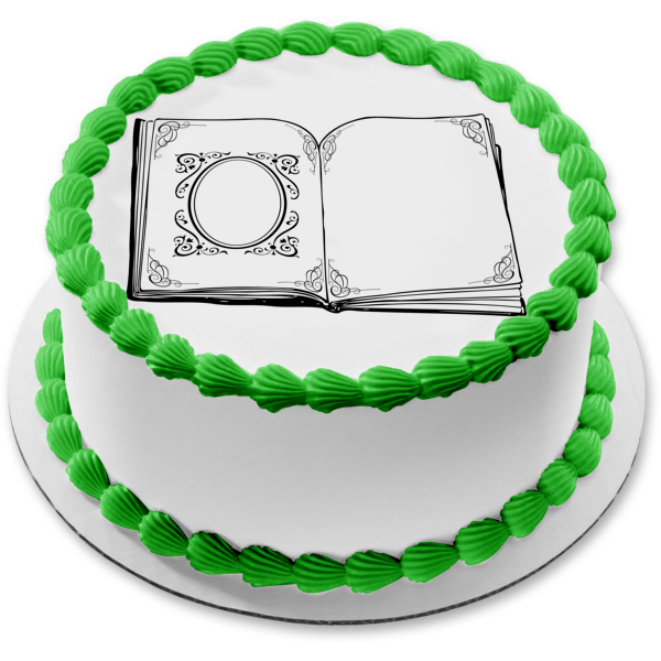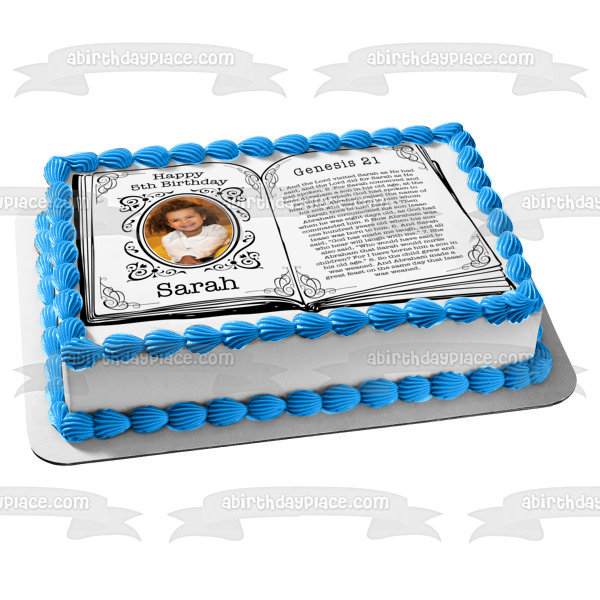 ¡Decora tu pastel con esta imagen de adorno comestible para pastel con temática bíblica que presenta páginas abiertas!