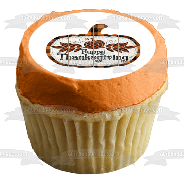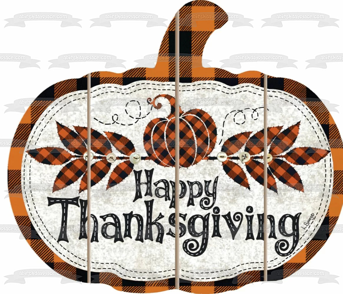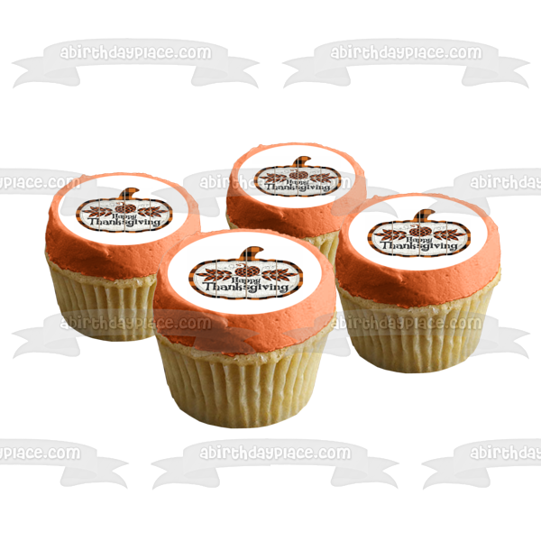 Feliz Día de Acción de Gracias, calabazas y hojas, adorno comestible para pastel, imagen ABPID56750