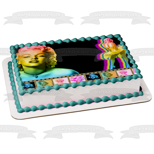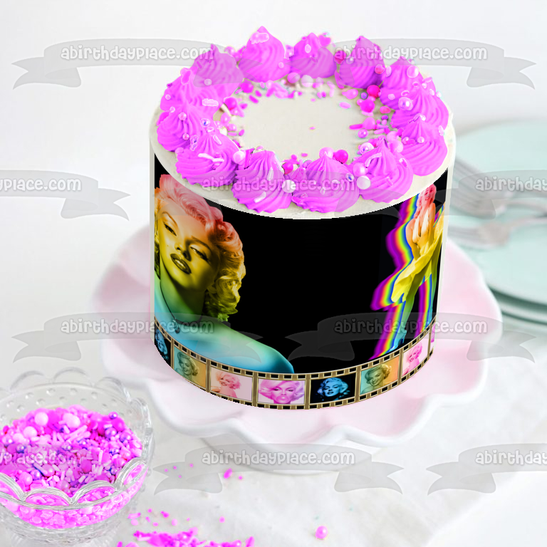 ¡Decora tu pastel con estas tiras de película de Marilyn Monroe, imágenes de tiras de pastel comestibles con temática de arcoíris y oro!