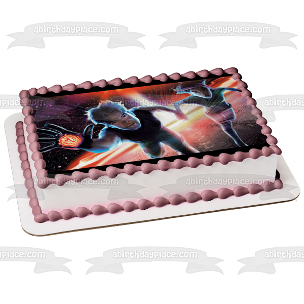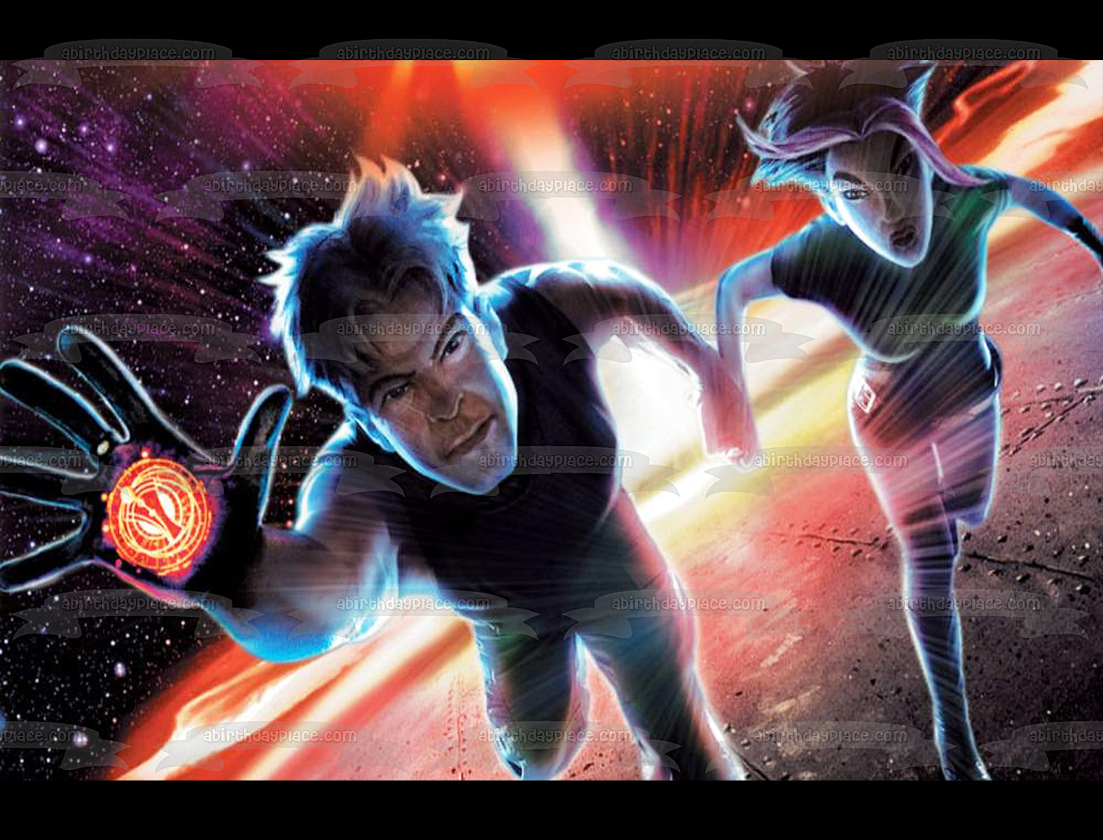¡Decora tu pastel con esta imagen de adorno comestible para pastel con el tema de la película Titan AE 2000 que presenta el póster icónico de Cale y Akima!