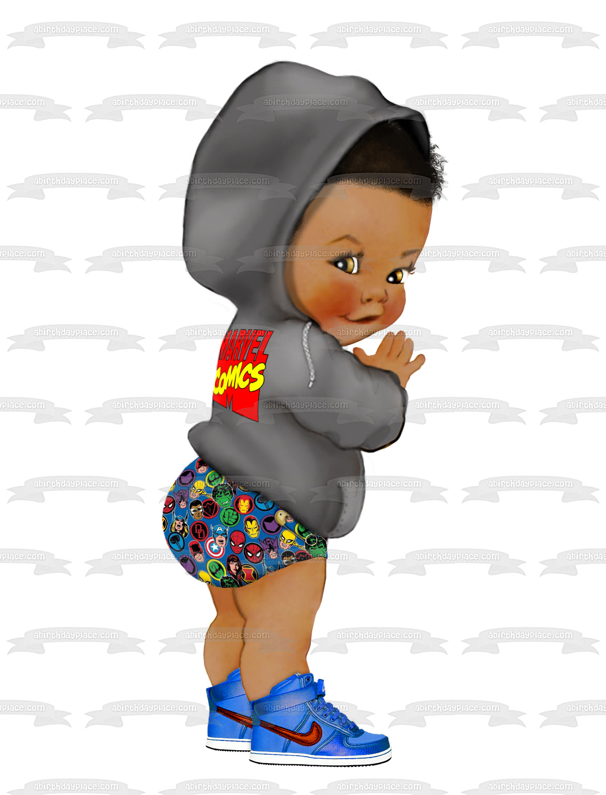 ¡Decora tu pastel con esta imagen de adorno comestible para pastel con temática de Marvel que presenta a un bebé!