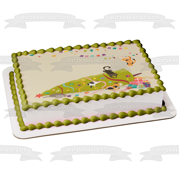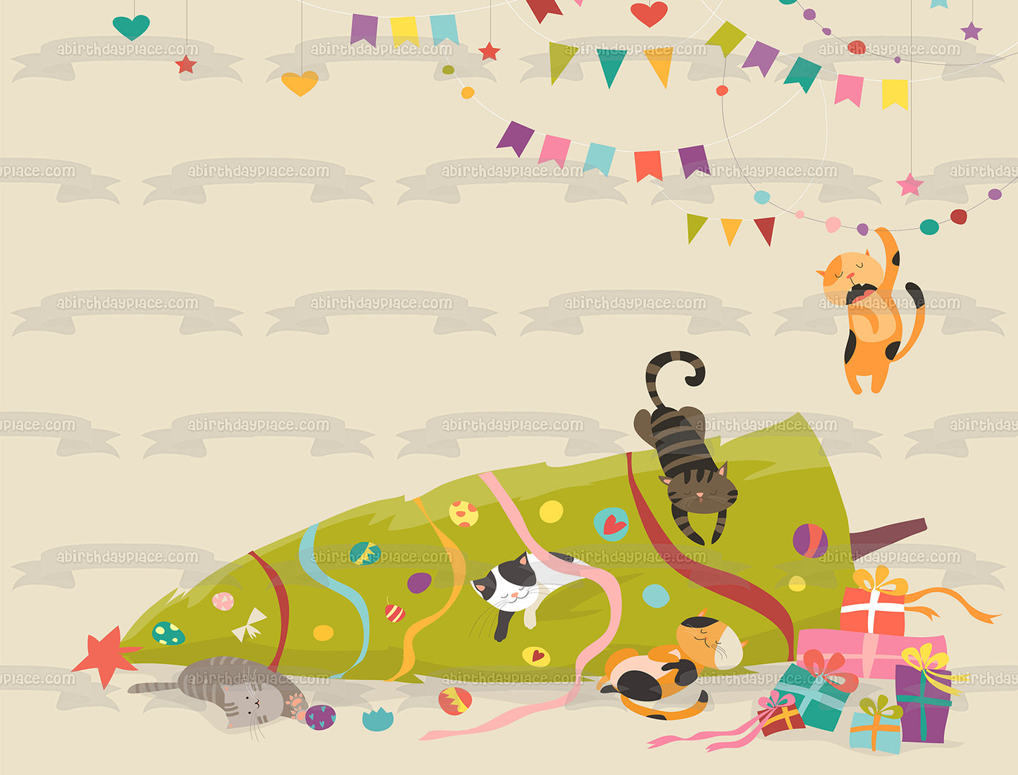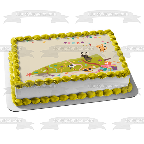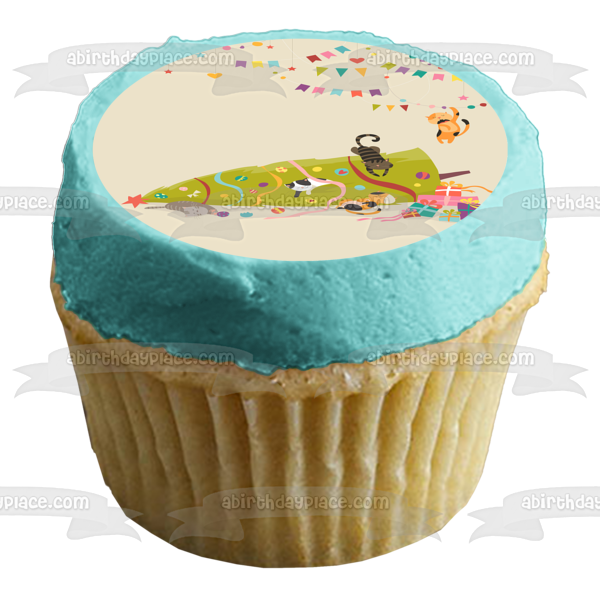 ¡Decora tu pastel con esta imagen de adorno comestible para pastel con temática navideña de Happy Mew Year que presenta gatos locos de Año Nuevo!