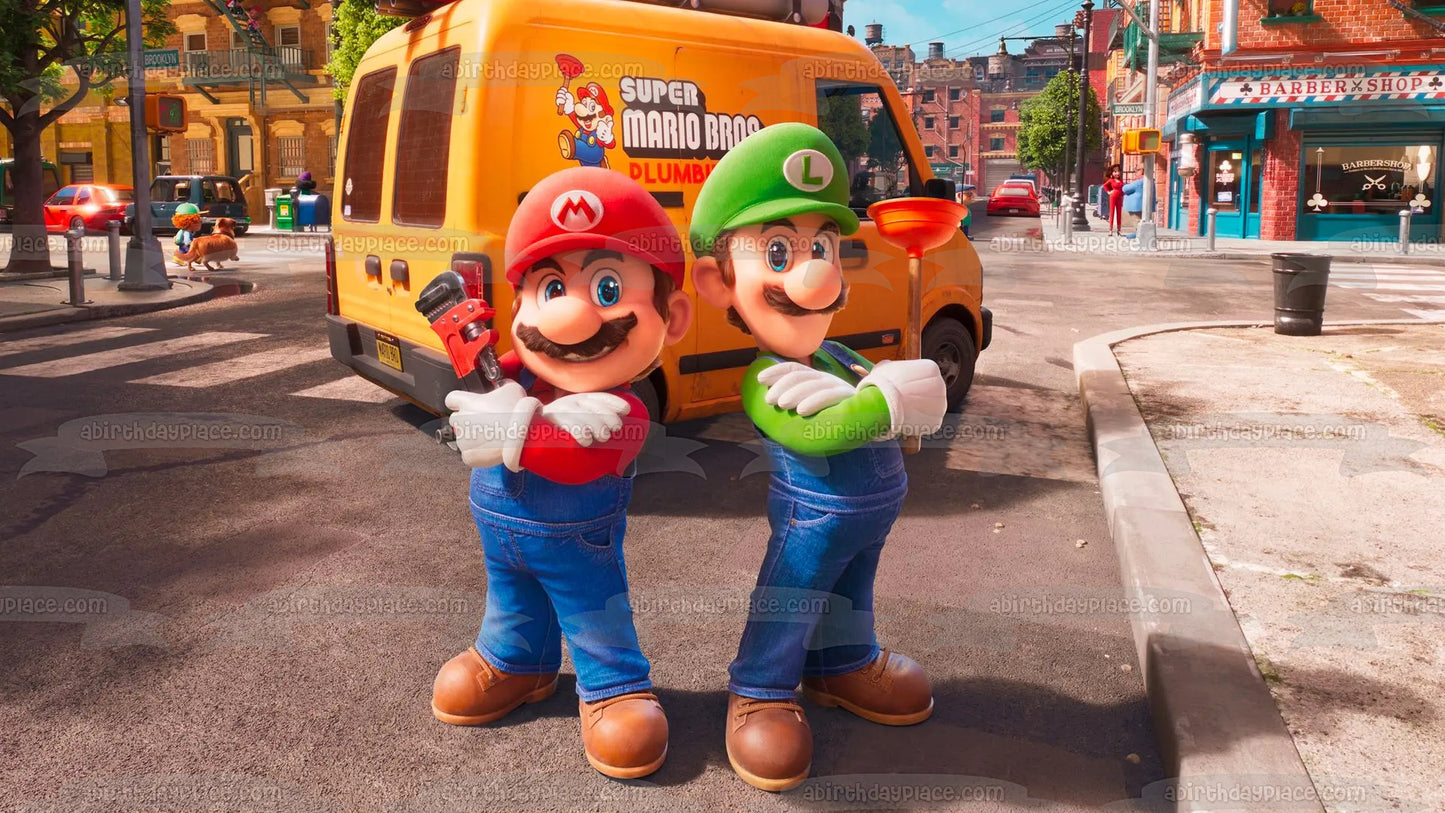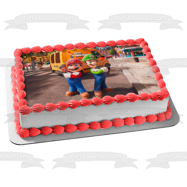 ¡Decora tu pastel con esta imagen de adorno comestible para pastel con temática de la película Super Mario Brothers que presenta a Mario y Luigi!