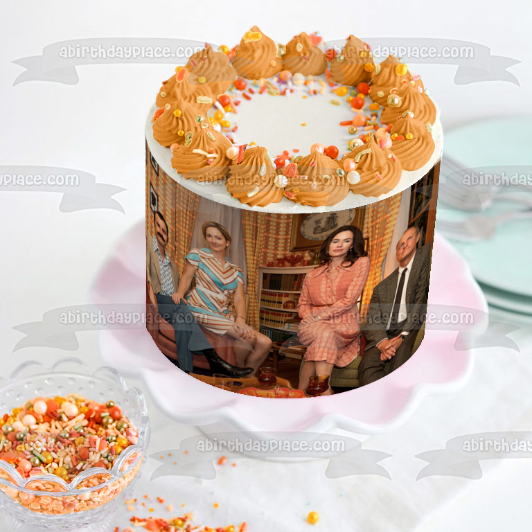 ¡Decora tu pastel con esta imagen de adorno comestible para pastel con el tema de los plomeros de la Casa Blanca que presenta a Dorothy, E. Howard, Fran y G. Gordon!