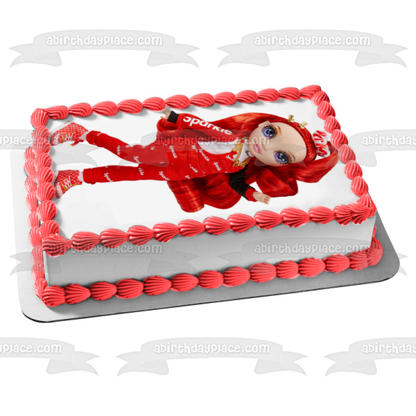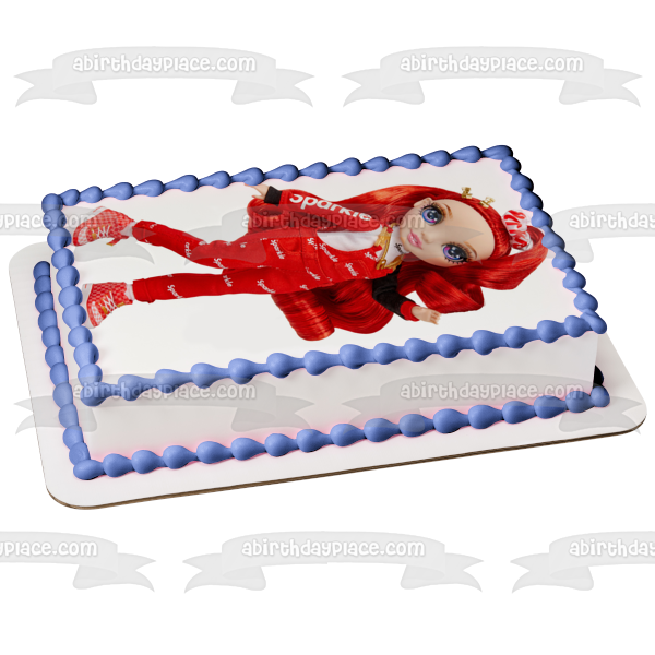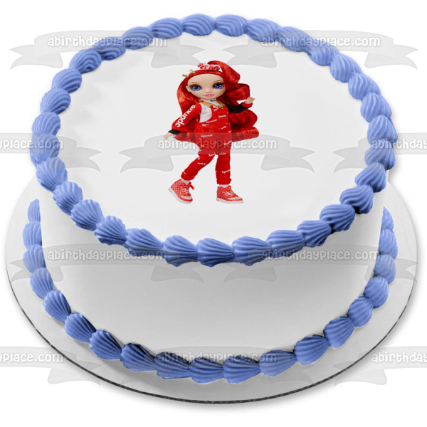 ¡Decora tu pastel con esta imagen de adorno comestible para pastel con temática de Rainbow High Junior High que presenta esta muñeca de moda Ruby Anderson!