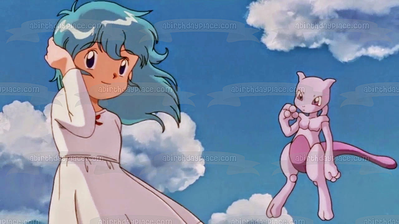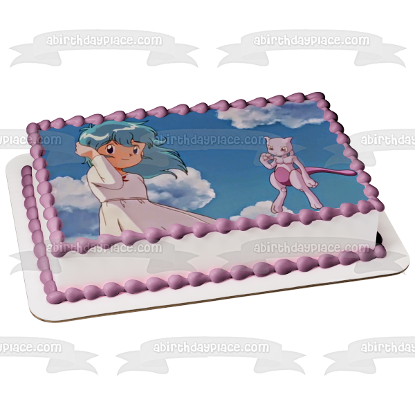 ¡Decora tu pastel con esta imagen de adorno comestible para pastel con temática de Pokémon the Movie: Secrets of the Jungle con Ambertwo y Mewtwo!