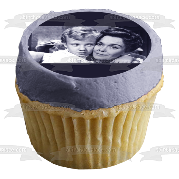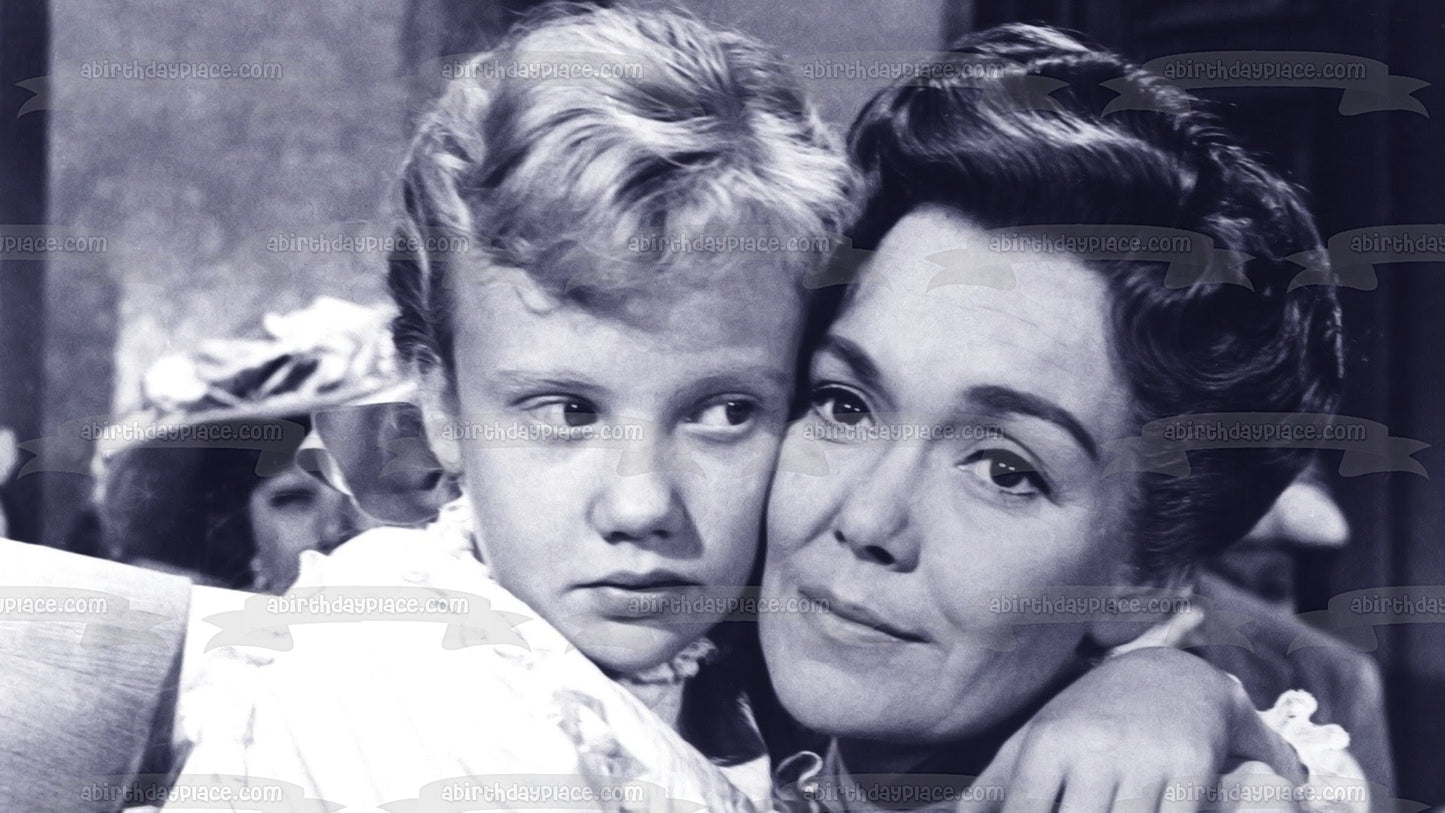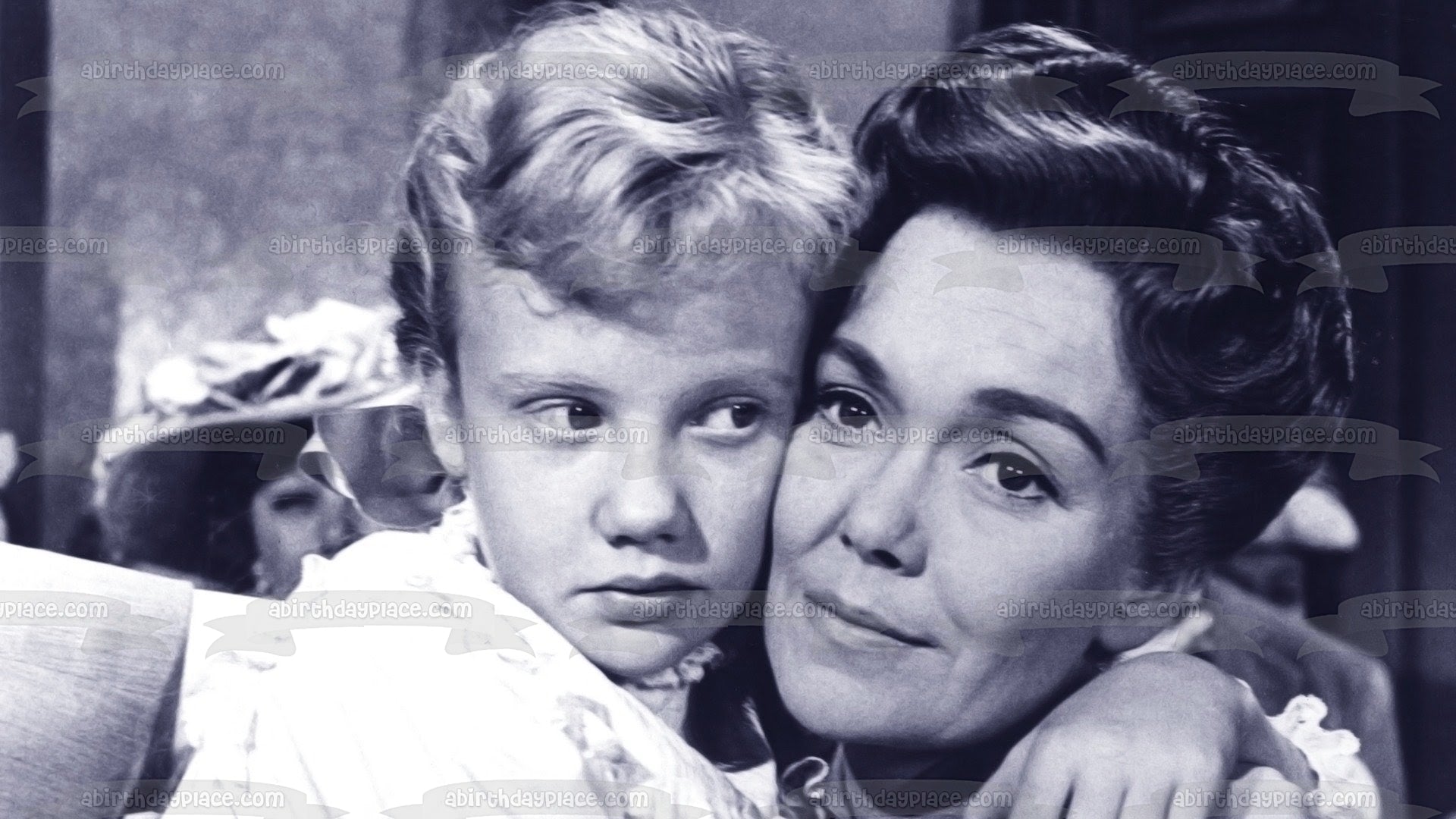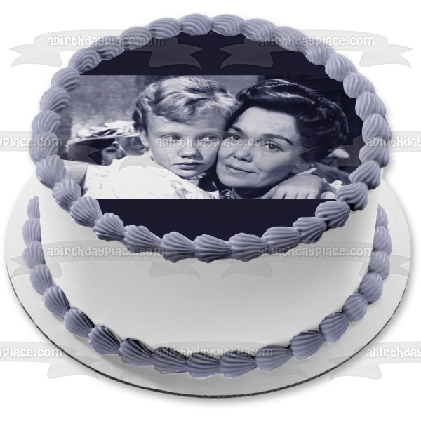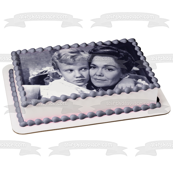 ¡Decora tu pastel con esta imagen de adorno comestible para pastel con temática de Pollyanna en blanco y negro que presenta a la tía Polly!