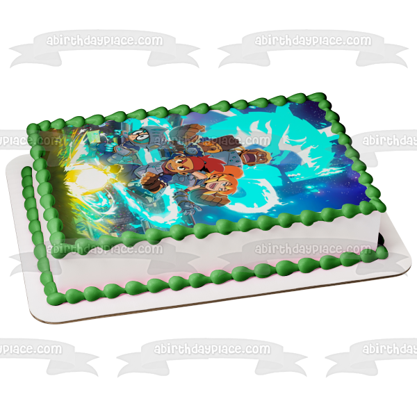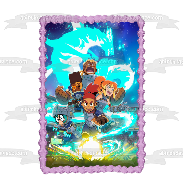 ¡Decora tu pastel con esta imagen de adorno comestible para pastel con temática de Dragon Striker y personajes variados!