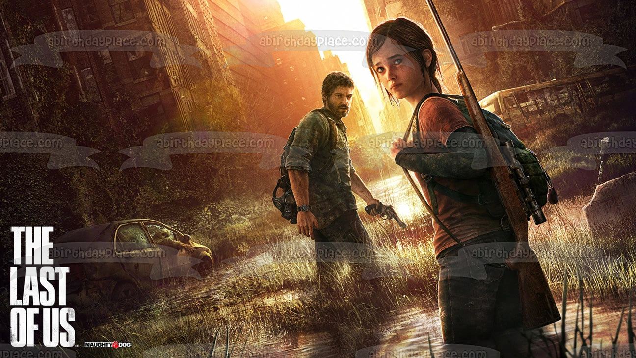 Celebre su día con esta imagen de adorno comestible para pastel con temática de The Last of Us que presenta a Joel y Ellie.