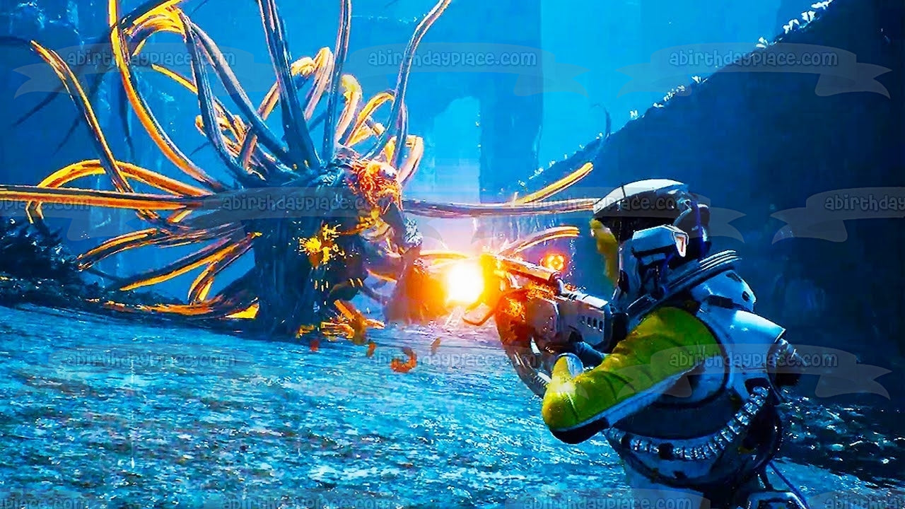 ¡Celebra a tu fan de Returnal con esta imagen de adorno comestible para pastel que presenta una escena del juego!
