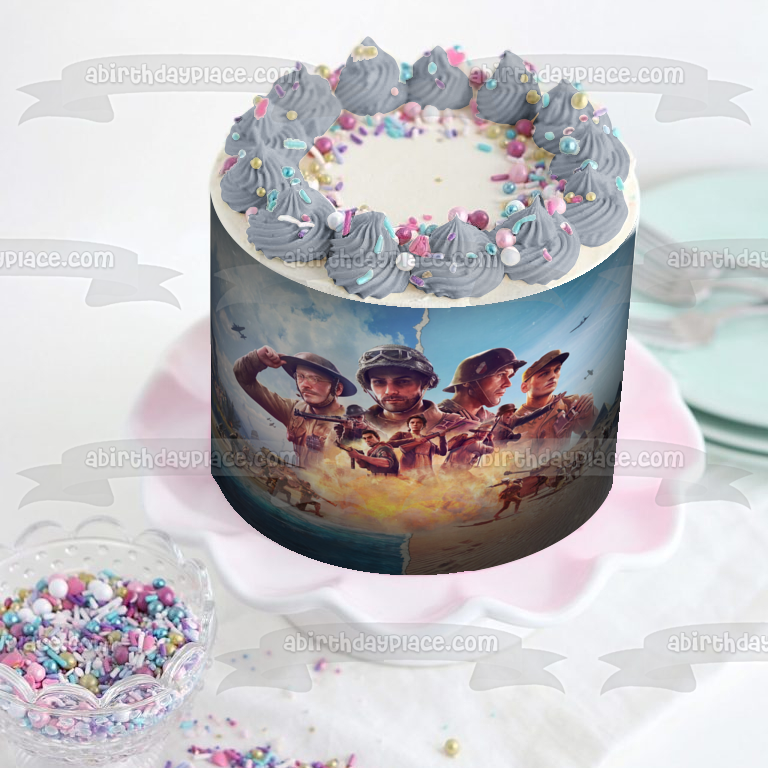 Celebre su día especial con esta imagen de adorno comestible para pastel con temática de Company of Heroes que presenta al teniente Conti, el mayor Blackmore y el sargento. ¡Artesanía!