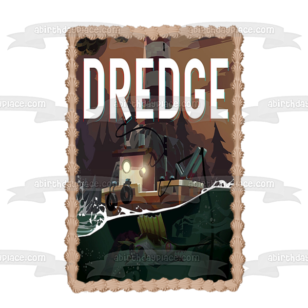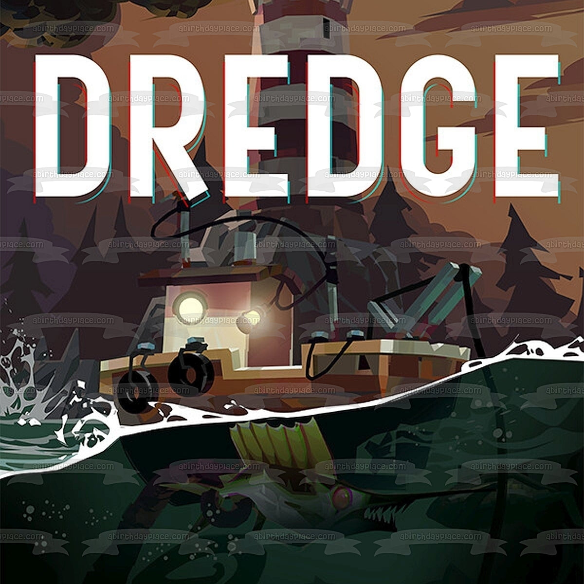 ¡Celebra a tu fanático de los videojuegos con esta imagen de adorno comestible para pastel con temática de Dredge que presenta un barco!