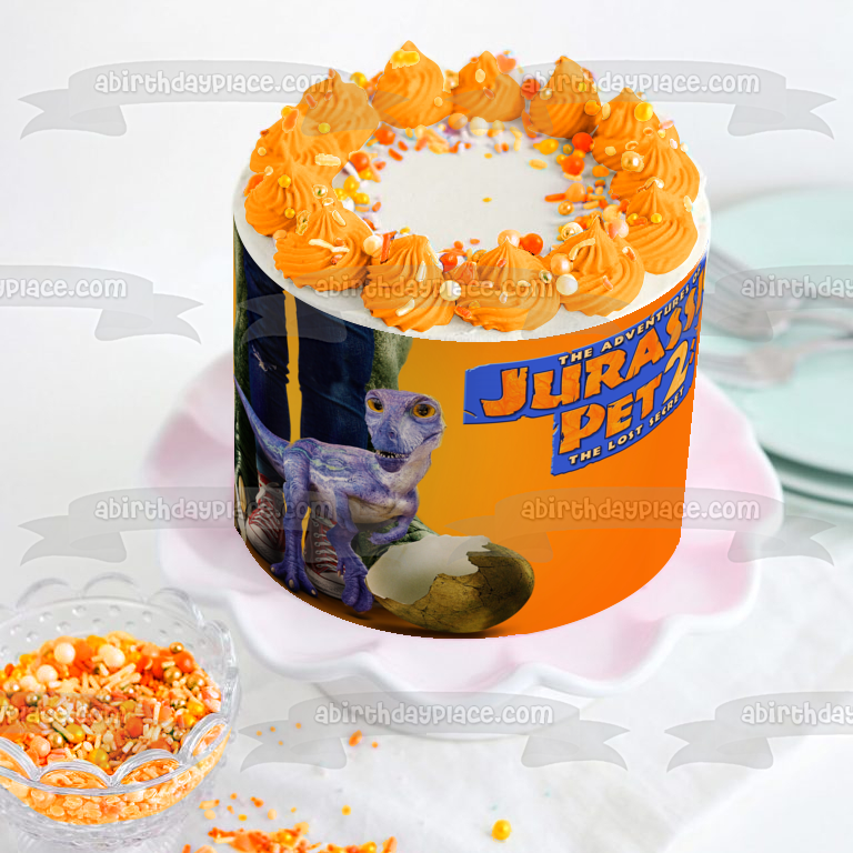 ¡Decora tu pastel con esta imagen de adorno comestible para pastel con temática de Las aventuras de Jurassic Pet: The Lost Secret que presenta un dinosaurio bebé!