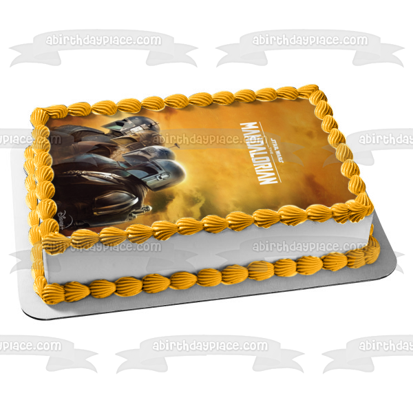 ¡Celebra tu día con esta imagen de adorno comestible para pastel con temática de Star Wars The Mandalorian!