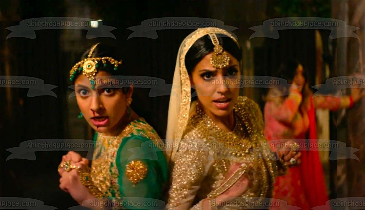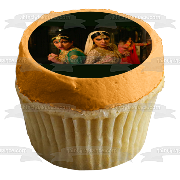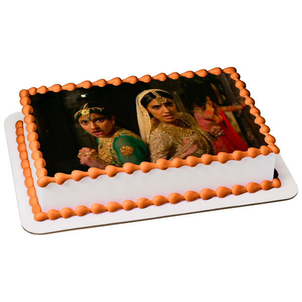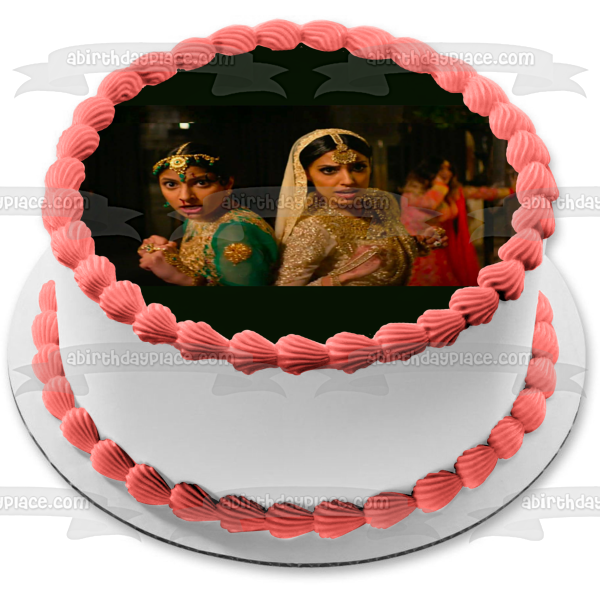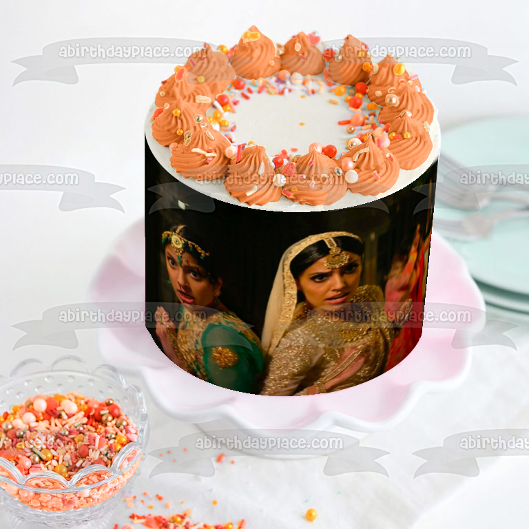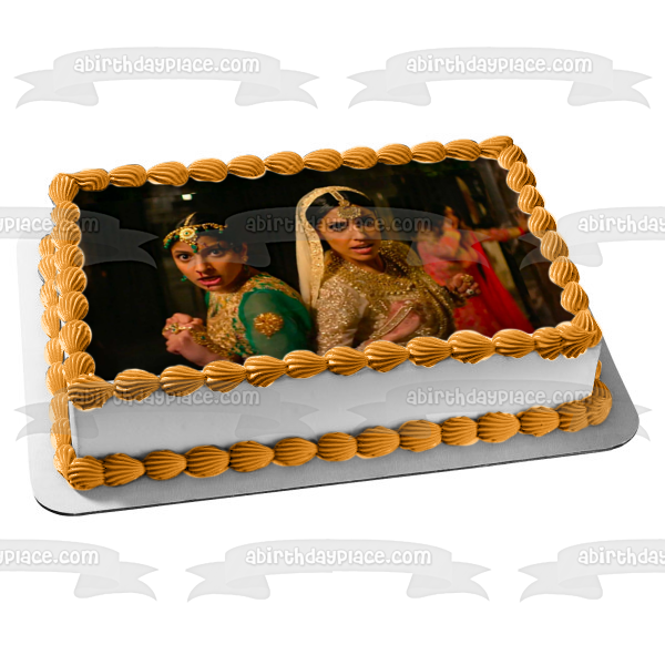 ¡Celebra tu día especial con esta imagen de adorno comestible para pastel con temática de Polite Society que presenta a Rahella!