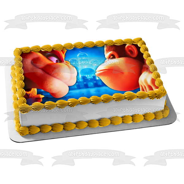 ¡Celebra tu día especial con esta imagen de adorno comestible para pastel con temática de Donkey Kong Country!