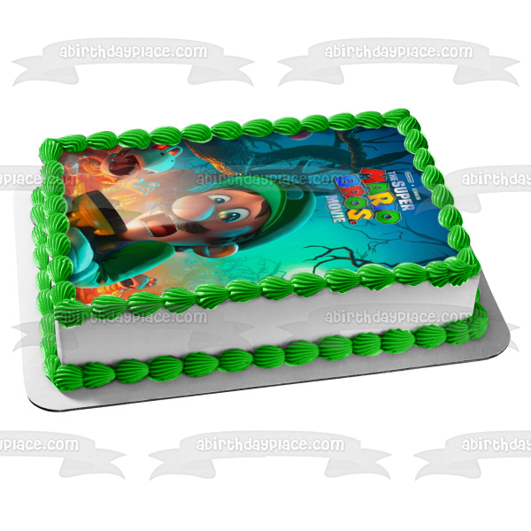 ¡Celebra a tu fanático de la película Super Mario Bros. con esta imagen de adorno comestible para pastel con Luigi!