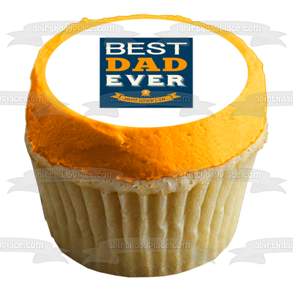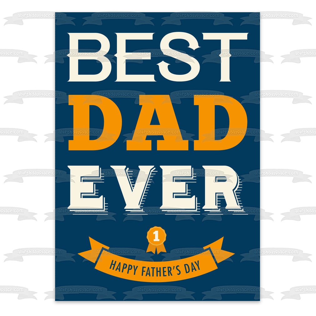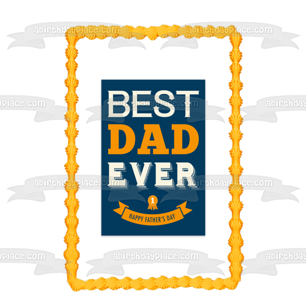 ¡Celebra tu evento especial con esta imagen de adorno comestible para pastel con el tema Best Dad Ever Happy Father's Day y una cinta amarilla!