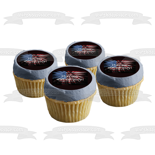 ¡Celebre su evento especial con esta imagen de adorno comestible para pastel con temática del Feliz 4 de julio que presenta la bandera estadounidense!