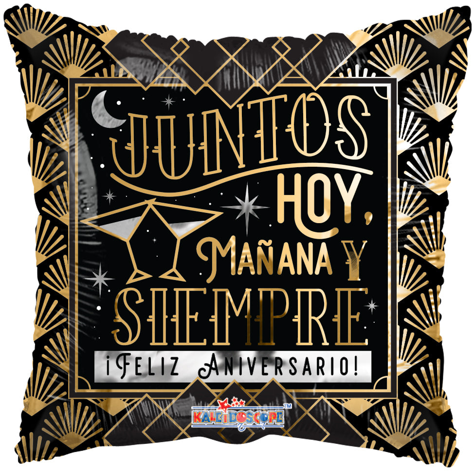 Globo de aluminio Aniversario negro y dorado de 18", 1 unidad