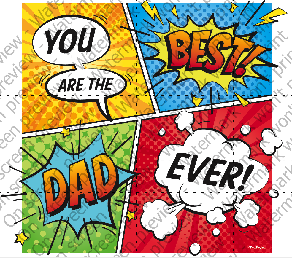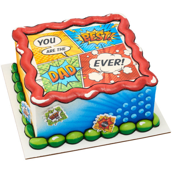 Celebre su evento especial con esta imagen de adorno comestible para pastel con el tema del Feliz Día del Padre que presenta las palabras "¡Eres el mejor papá de todos los tiempos!"