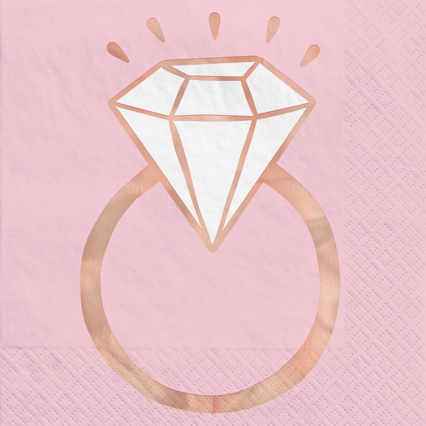 ¡Mantén limpios a los invitados a la fiesta con las servilletas de almuerzo con anillos de diamantes en oro rosa y rubor! Estas servilletas de papel rosa tienen un ícono de anillo de diamantes metálico en oro rosa. ¡Coloca estas modernas servilletas con estaciones de comida o con aperitivos en despedidas de soltera, despedidas de soltera o fiestas de compromiso!